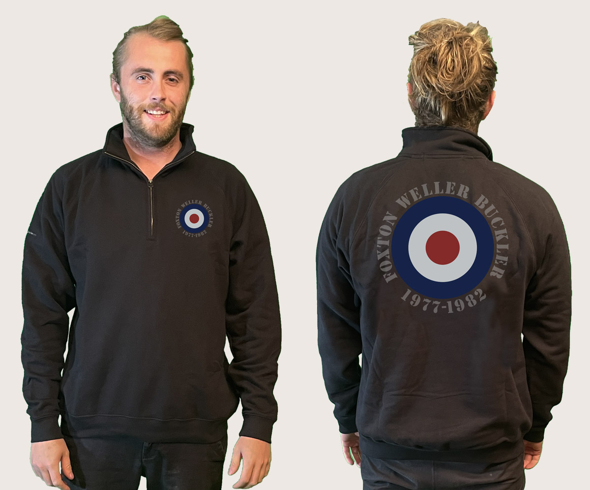 Our new style zip-up sweatshirt with collar celebrates The Jam 1977-82, front and back.
