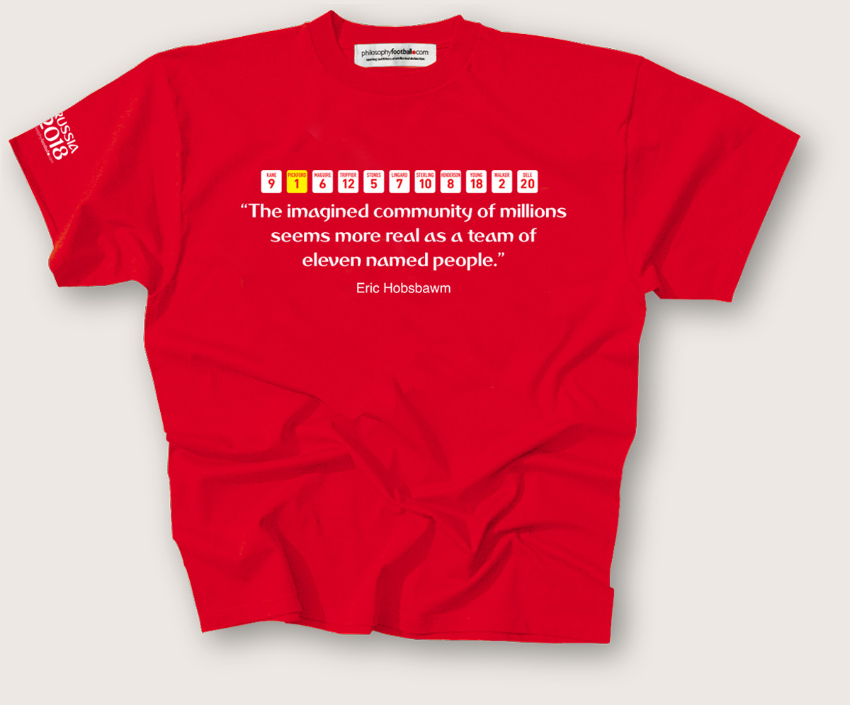 Mark Perryman is co-founder of Philosophy Football, AKA ‘Sporting outfitters of intellectual distinction. Our ‘imagined community of millions;’ T-shirt is available